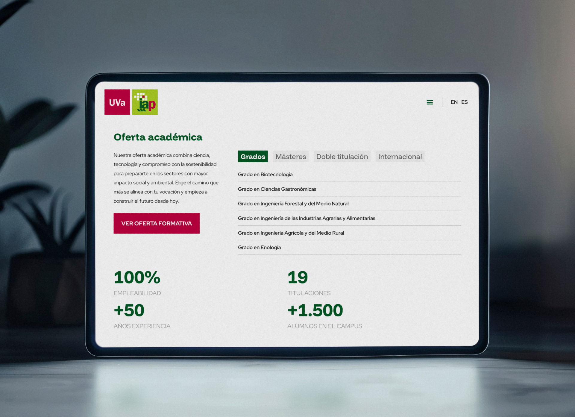 Hemos diseñado y desarrollado la nueva página web de la Escuela Técnica Superior de Ingenierías Agrarias de Palencia (ETSIIAA), perteneciente a la Universidad de Valladolid, con el objetivo de modernizar su presencia digital y convertirla en una herramienta útil, clara y alineada con la excelencia académica del centro.
